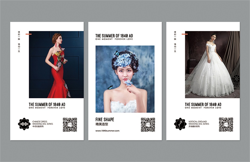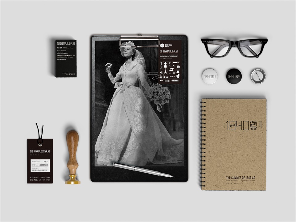 1840夏是設(shè)計師原創(chuàng)婚紗品牌,專注于婚紗禮服的設(shè)計生產(chǎn)與銷售。后眾設(shè)計的工作包括品牌命名、品牌形象設(shè)計、環(huán)境系統(tǒng)設(shè)計、執(zhí)行物料設(shè)計。