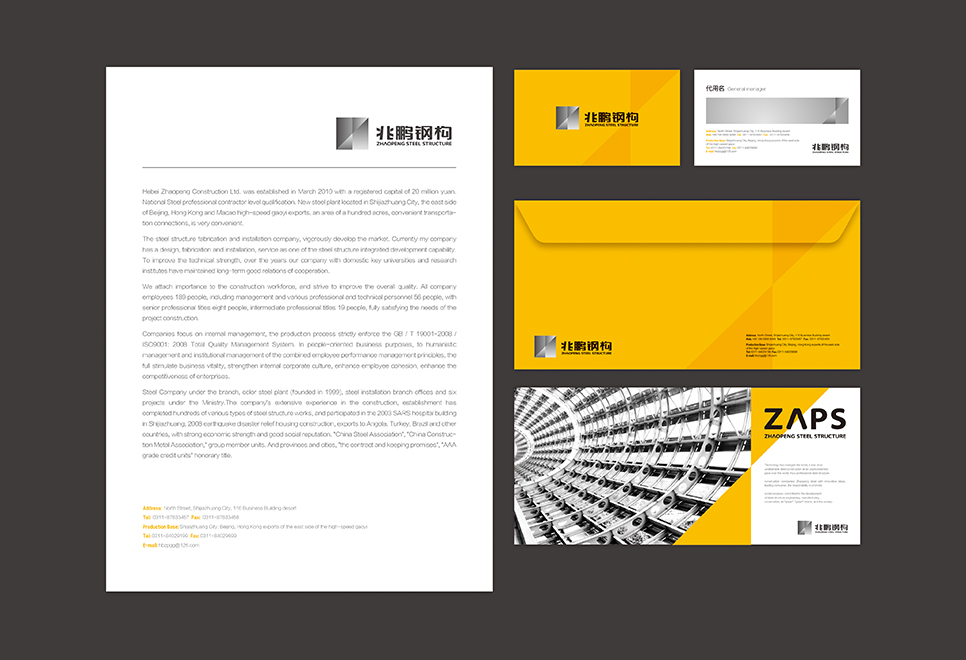 兆鵬鋼構(gòu)標識圖形色彩取自鋼鐵本身顏色,用產(chǎn)品本身的色彩去演繹品牌的獨特魅力。黑白灰色在美術(shù)繪畫中是無色彩傾向的顏色,任何顏色都是始于白而終于黑。在這里,我們用黑白灰來體現(xiàn)所有色彩融合之后的顏色。大千世界,鋼筋建筑演繹出來的是我們心中對現(xiàn)實,對夢想的觀點,可以是紅色,可以是灰色,也可以是綠色,我們將這種鋼鐵本身的色彩設(shè)定為濃縮多種色彩后的黑白灰漸變色,使之顯得更具深邃沉穩(wěn)和博大精深。