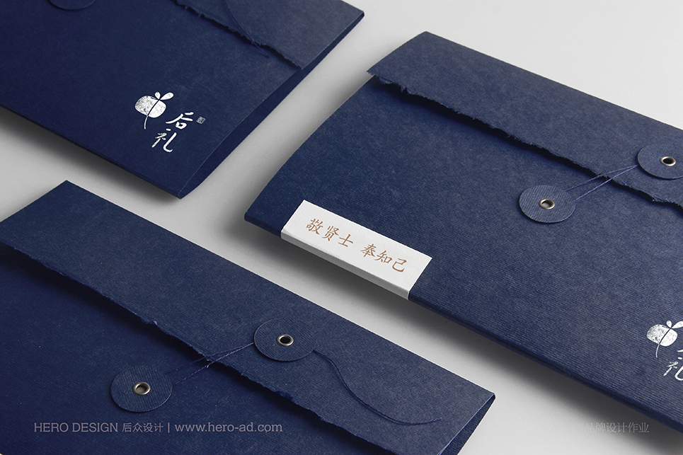 后禮的標志即以包裝好的禮品樣式為出發(fā)點進行創(chuàng)意發(fā)散而來。線條拙樸,充滿著古典純樸的美,品牌名稱以手寫體呈現(xiàn),樸茂古厚、大巧若拙、率真硬朗、氣度高華,且鋒巧而不銳,更加的圓潤,令人感到舒適。同時配合傳統(tǒng)印章的表現(xiàn)形式,增加文化的厚重感。