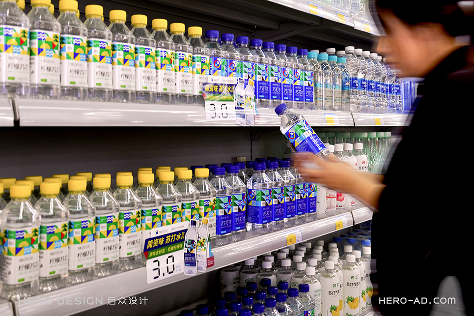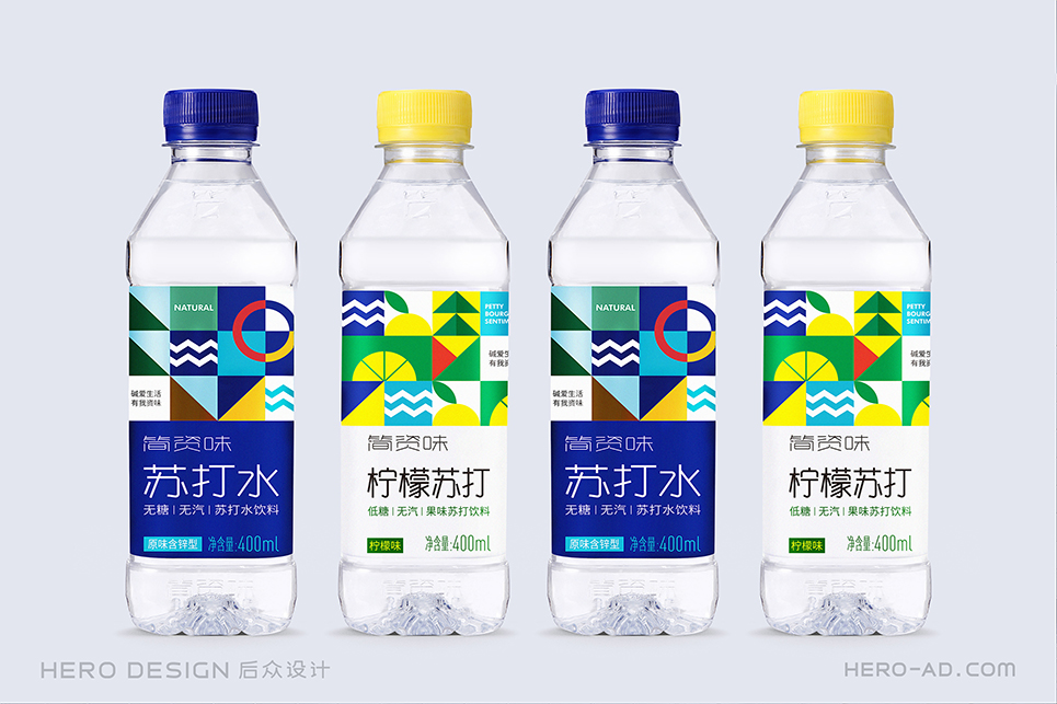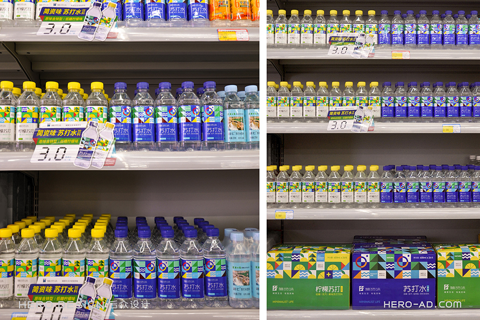 在包裝層面,為了貫徹“堿愛生活 有我資味”的生活觀,在標(biāo)志所借鑒的至上主義表現(xiàn)形式中,結(jié)合簡資味蘇打水極致、簡約、自然、健康的品牌定位和目標(biāo)消費(fèi)者生活態(tài)度,將展示自然生態(tài)的相關(guān)元素融入其中,森林高山、原野河流、陽光云霧、海闊天空……通過對這些元素進(jìn)行幾何化抽象處理,得到獨(dú)屬于簡資味的超級符號專屬圖形,并在所有的包裝、物料中一以貫之。最終與消費(fèi)者形成共鳴,從而能夠使消費(fèi)者對其產(chǎn)生獨(dú)特的情感利益,完成品牌忠誠度的打造。