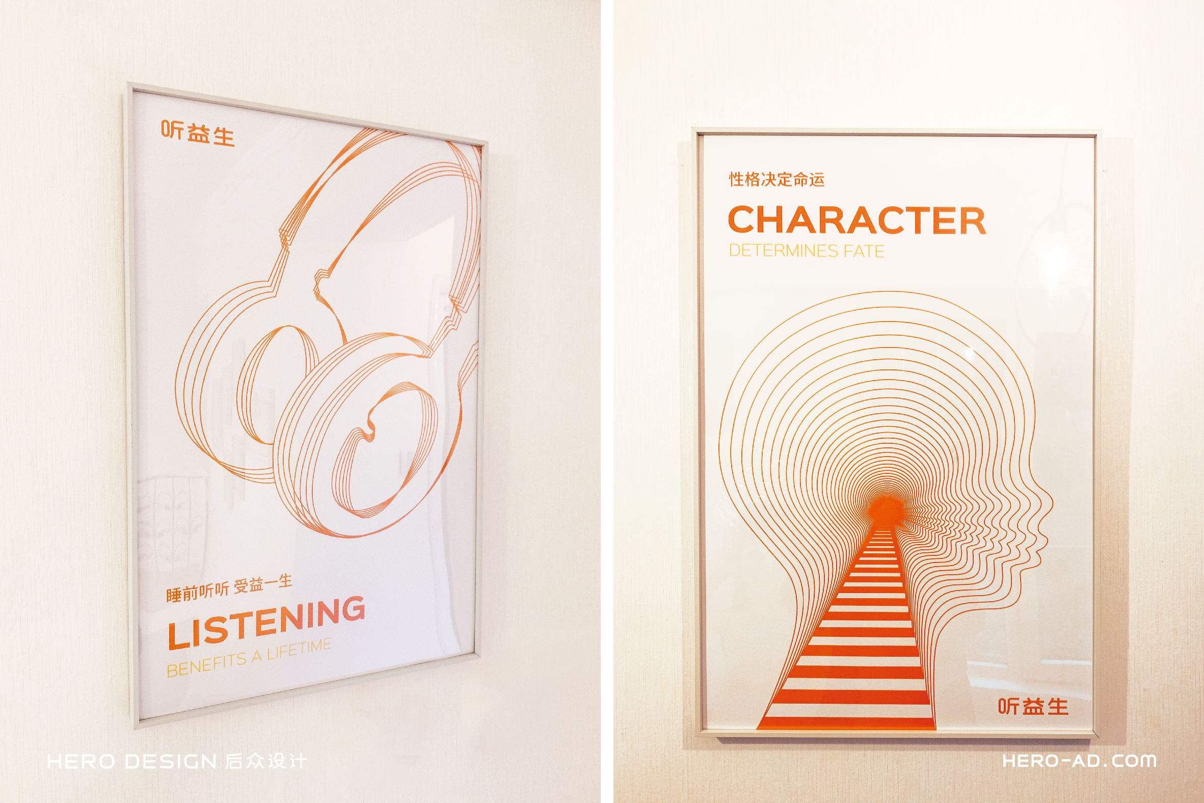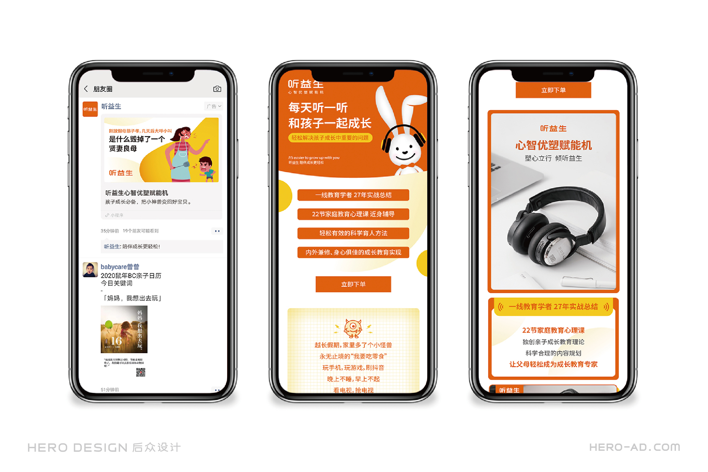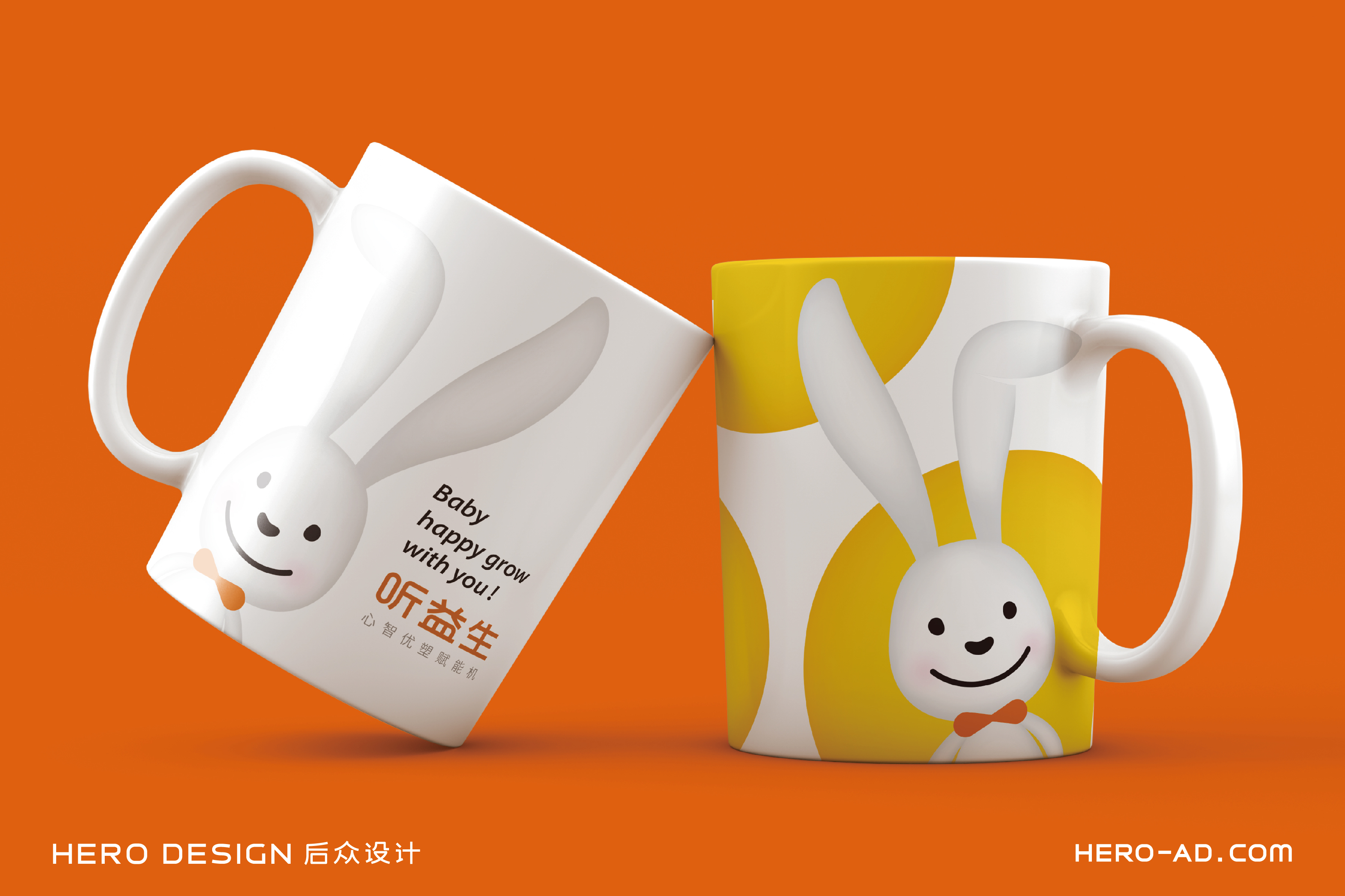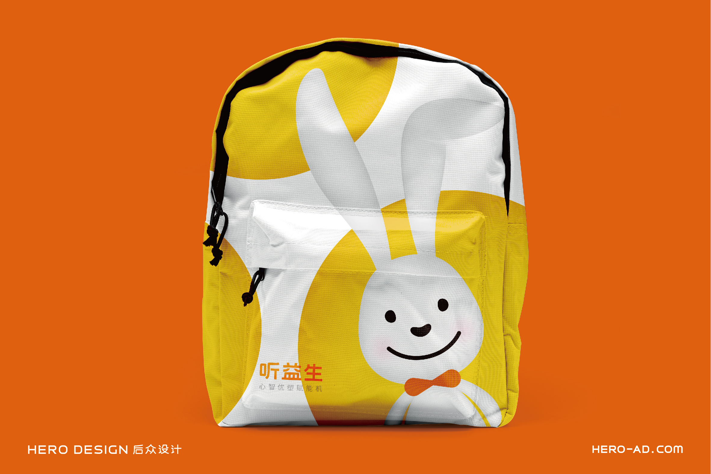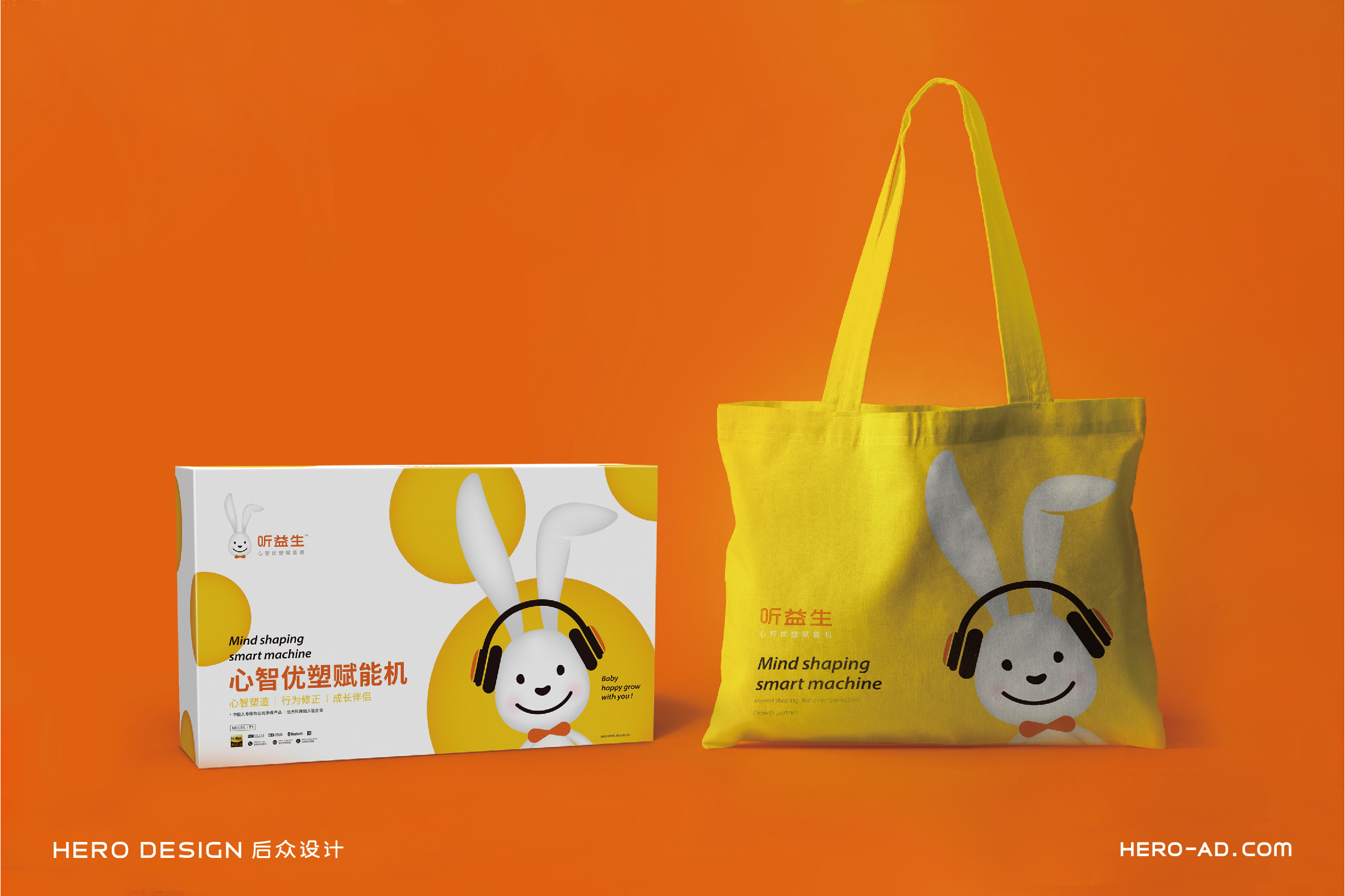 在童話里,兔子是乖巧伶俐、天真執(zhí)著、聰慧豁達(dá)、勇敢守信的形象代表,結(jié)合兔子本身雪白柔順的皮毛、長(zhǎng)長(zhǎng)的耳朵以及善于奔跑跳躍的特點(diǎn),一直是孩子們最喜愛(ài)的動(dòng)物形象之一。針對(duì)孩子喜愛(ài)可愛(ài)、萌系的卡通形象的群體特性,在聽(tīng)益生的視覺(jué)表現(xiàn)層面,我們?yōu)槁?tīng)益生創(chuàng)造一個(gè)戴著聽(tīng)益生心智優(yōu)塑賦能機(jī)的小白兔形象,以兔喻人,對(duì)真實(shí)的使用場(chǎng)景進(jìn)行展示,通過(guò)對(duì)品牌用戶喜好的精準(zhǔn)把握,拉近品牌與使用者的情感距離。