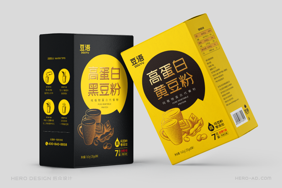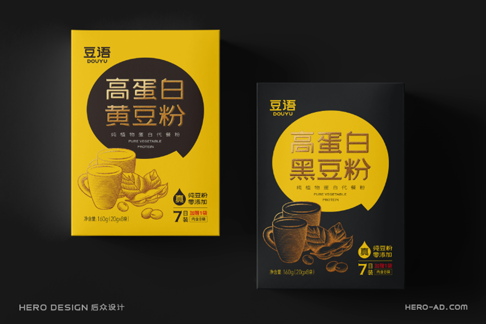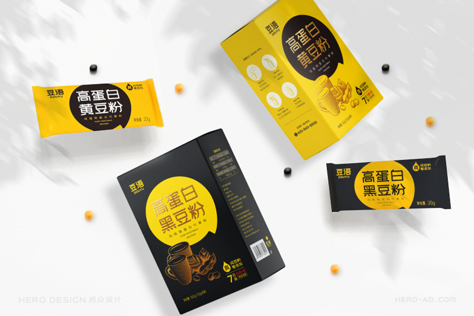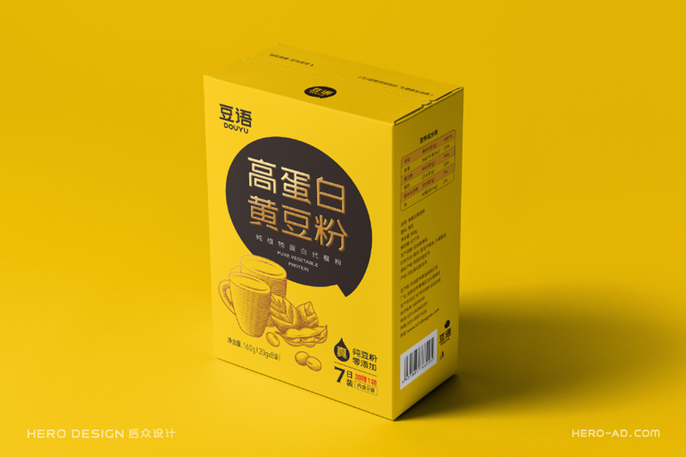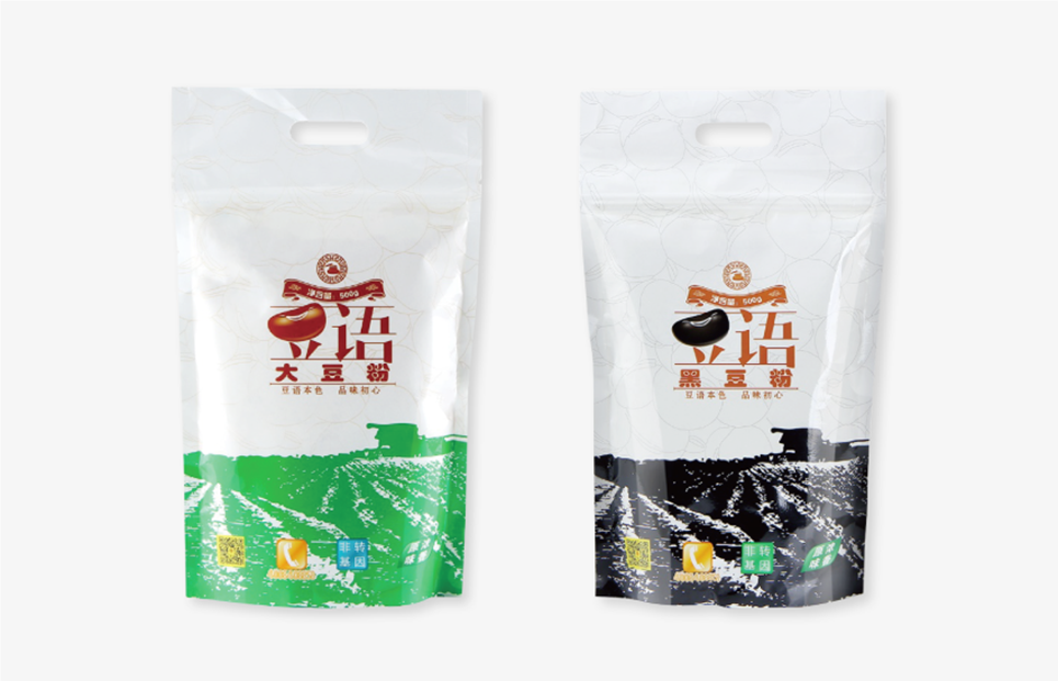 黃色是事物本身的色彩,而黑色包容博大,綠色又于沉靜中孕育希望。幾種色彩搭配,對(duì)比強(qiáng)烈又和諧自然,共同構(gòu)成了豆語(yǔ)品牌的色彩體系。