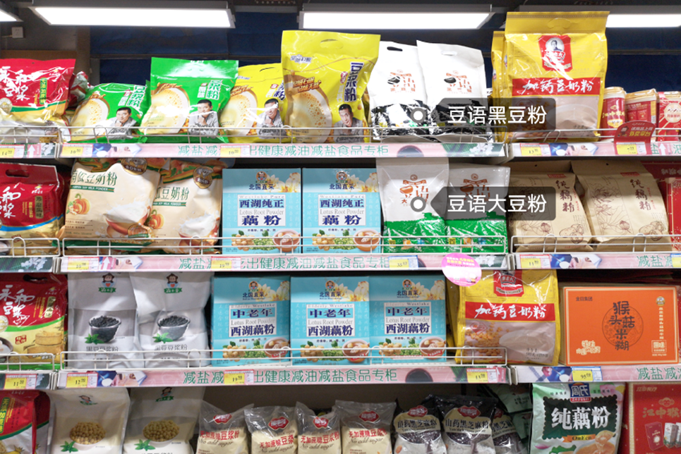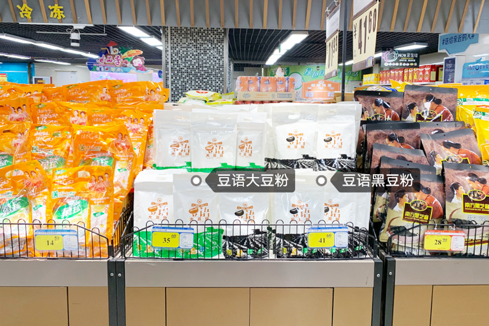 項(xiàng)目初期,我們實(shí)地調(diào)研了多家不同規(guī)模的超市賣(mài)場(chǎng),觀察豆語(yǔ)產(chǎn)品的在賣(mài)場(chǎng)中的陳列現(xiàn)狀。通過(guò)觀察,我們發(fā)現(xiàn):
