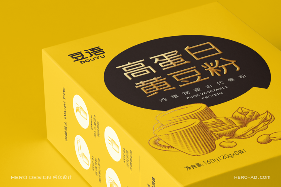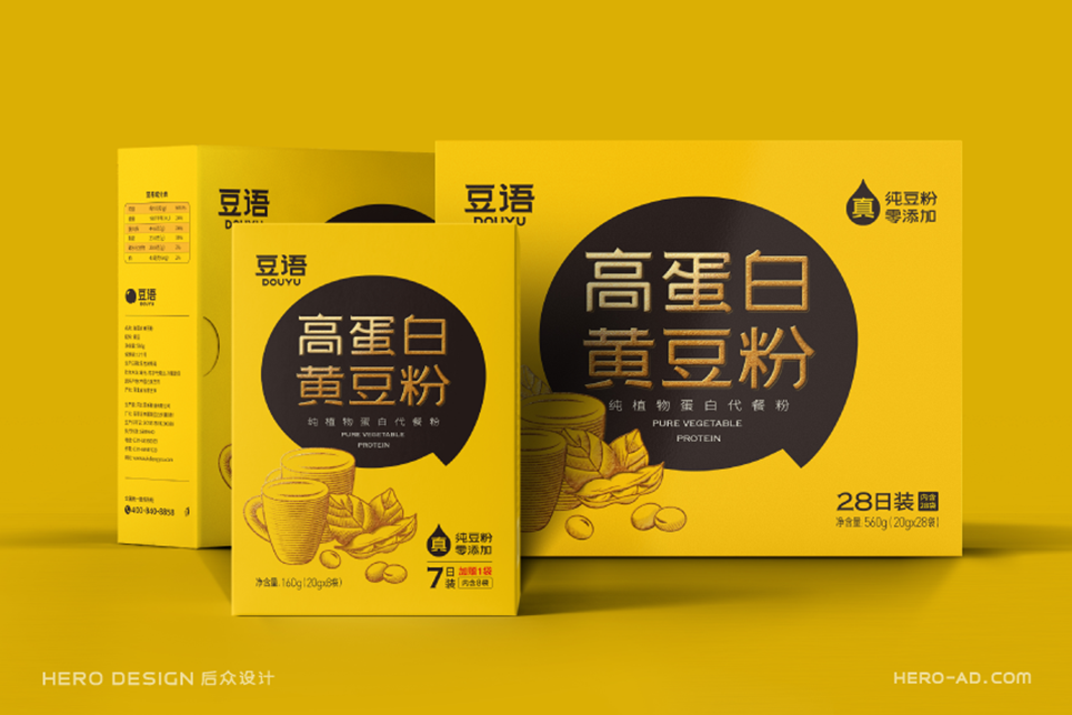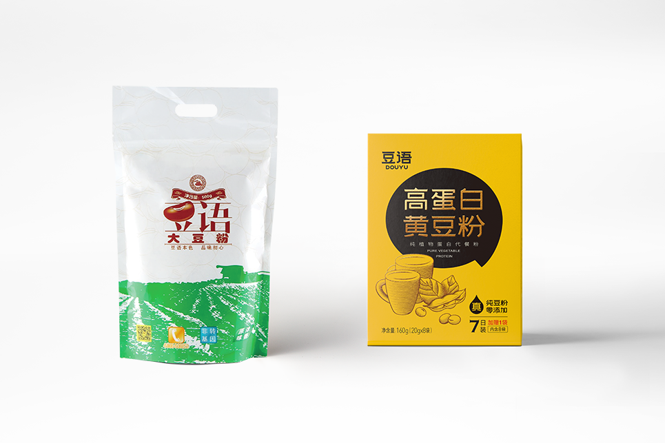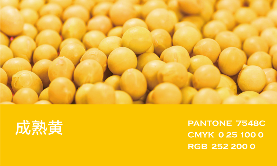 大豆,在北方又叫黃豆,其標(biāo)志性的豆黃色是其最鮮明的色彩密碼。蘊(yùn)含著幾千年人們對(duì)于豆科植物的感恩與喜愛(ài)。于是,我們通過(guò)對(duì)不同產(chǎn)地區(qū)域種植出的大豆色彩的均衡考量,結(jié)合人們對(duì)于色彩關(guān)注度的科學(xué)理論,通過(guò)對(duì)色彩數(shù)值的調(diào)和,確定了豆語(yǔ)品牌的主色彩:成熟黃。