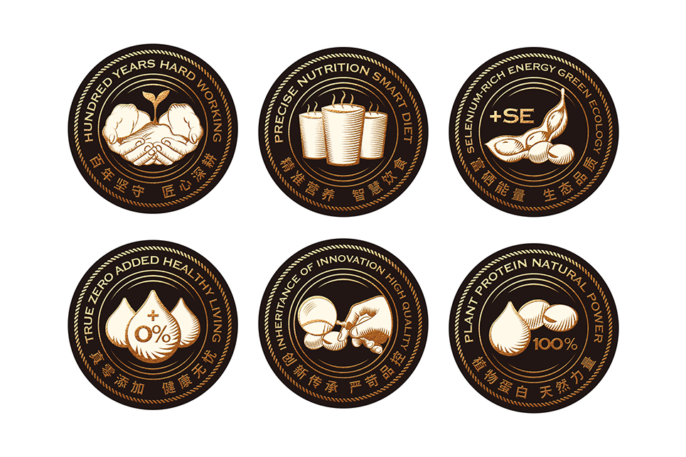 有了大眾認(rèn)知,就要將大眾認(rèn)知通過(guò)美學(xué)設(shè)計(jì)進(jìn)行重塑,變成品牌私有化的資產(chǎn)。標(biāo)志通過(guò)對(duì)于豆子與對(duì)話框的結(jié)合,形成超級(jí)符號(hào),借力于事物原型大豆和生活對(duì)話場(chǎng)景來(lái)詮釋品牌名稱(chēng);利用大豆與對(duì)話框的結(jié)合,訴說(shuō)品牌價(jià)值,好似豆子自己在說(shuō)話,講述著有關(guān)豆語(yǔ)的故事。