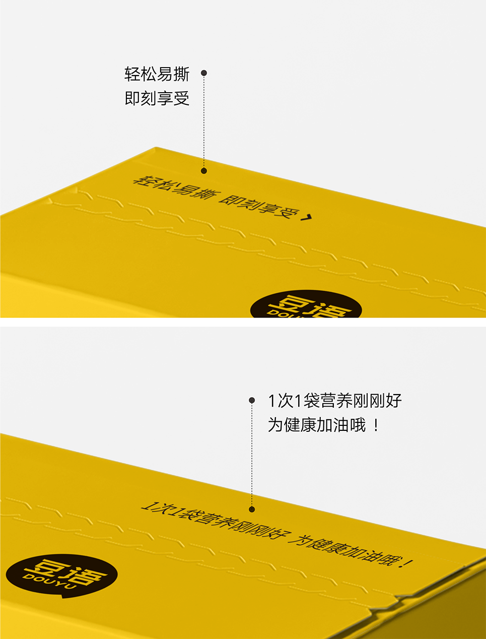 為了解決劑量把握和密封受潮的問(wèn)題,我們將目前的散裝形態(tài)改為每20g裝一個(gè)小袋,一次一袋,更易儲(chǔ)存,同時(shí)將最外層的袋裝改為易撕口紙盒,強(qiáng)調(diào)開(kāi)盒形式感與印刷工藝的體現(xiàn),再搭配內(nèi)裝的小袋,同步提升品牌的消費(fèi)體驗(yàn)感與價(jià)值感。