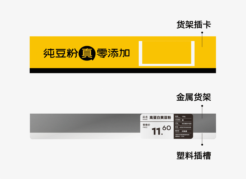 為了不同貨架的廣泛適用,在貨架貼上繼續(xù)進(jìn)行優(yōu)化,把貨架貼升級(jí)為貨架插卡。