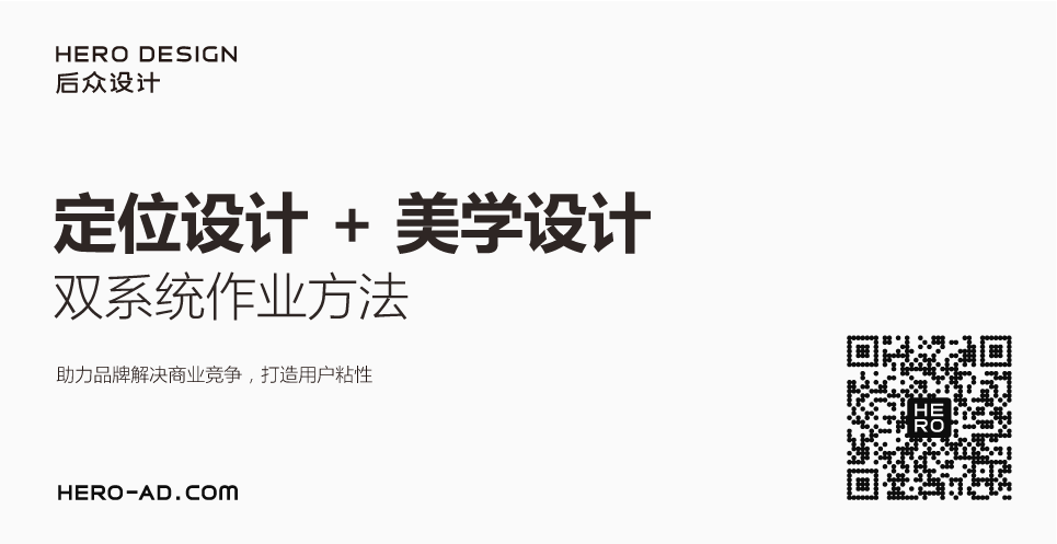 后眾秉持“品牌策略定位”與“品牌美學(xué)設(shè)計”并重的作業(yè)理念,創(chuàng)新性的開發(fā)出“定位設(shè)計”+“美學(xué)設(shè)計”雙系統(tǒng)的作業(yè)方法論,時刻平衡“品牌策略定位”與“品牌美學(xué)設(shè)計”的辯證關(guān)系,力圖將兩者做到有機(jī)融合,以組合拳的力量出擊,助力品牌解決商業(yè)競爭與用戶粘性的問題,打造同時具備商業(yè)價值與人文價值的品牌。