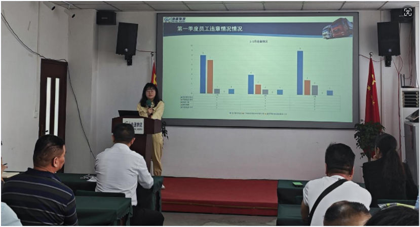 唐堯總結了公司3月安全生產工作情況以及**季度安全生產工作情況,以圖表形式展現了各個環節需要整改的地方,強調在車輛行駛過程中,務必不得超速行駛、疲勞駕駛。結合近期交通事故案例提問,鞏固應急處置相關知識。結合近期公司車輛發生車輛違章的情況,提醒駕駛員貨車限行時間及路線。