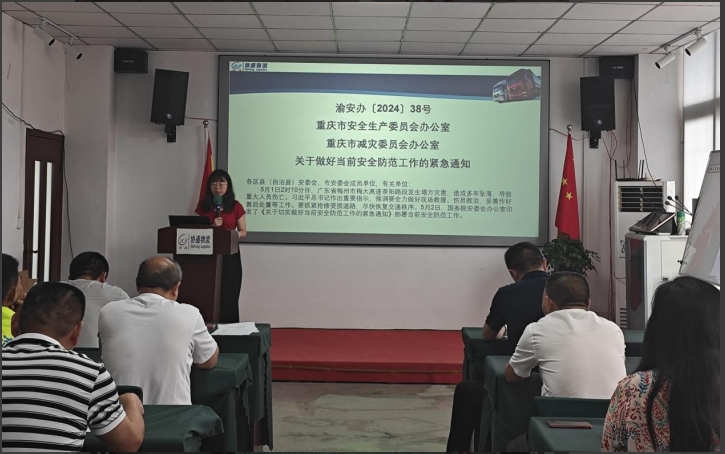 會(huì)議首先由安全部負(fù)責(zé)人唐堯講話,傳達(dá)交通運(yùn)輸部辦公廳關(guān)于河北安新“4.29”等道路交通事故的警示通報(bào);傳達(dá)渝安辦〔2024〕38號重慶市安全生產(chǎn)委員會(huì)辦公室重慶市減災(zāi)委員會(huì)辦公室關(guān)于做好當(dāng)前安全防范工作的緊急通知;傳達(dá)渝安辦〔2024〕43號重慶市安全生產(chǎn)委員會(huì)辦公室關(guān)于近期典型生產(chǎn)安全事故的通報(bào);傳達(dá)重慶市安全生產(chǎn)委員會(huì)辦公室關(guān)于轉(zhuǎn)發(fā)《國務(wù)院安委會(huì)辦公室關(guān)于近期典型事故有關(guān)情況的通報(bào)》的通知;傳達(dá)重慶市交通運(yùn)輸委員會(huì)關(guān)于5·31涪陵區(qū)白濤石拱背路段道路交通事故的警示通報(bào)等文件精神,要求全體員工認(rèn)真按照上級文件精神做好安全生產(chǎn)各項(xiàng)工作。