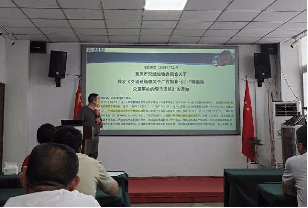 總經理唐云忠首先傳達了渝交便函〔2025〕698 號重慶市交通運輸委員會關于轉發《交通運輸部安委會關于近期幾起道路交通事故的警示通報》的通知;傳達渝交便函〔2025〕772 號重慶市交通運輸委員會關于轉發《交通運輸部關于廣西賀州“5·31”等道路交通事故的警示通報》的通知;傳達渝道運發〔2025〕76 號重慶市道路運輸事務中心關于深刻汲取事故教訓堅決防止事故反彈的通知;傳達重慶市道路運輸事務中心關于近期貨運車輛道路運輸事故的警示通報;傳達重慶市交通運輸委員會關于“5·2”較大道路交通事故的警示通報;傳渝北道運〔2025〕28號重慶市渝北區道路運輸事務中心關于深入貫徹落實習近平總書記重要指示精神堅決防范安全生產事故反彈的通知;傳達渝北道運〔2025〕29號重慶市渝北區道路運輸事務中心關于印發《道路運輸駕駛員安全文明駕駛提升專項行動工作方案》的通知等文件精神,要求全體員工認真按照文件精神做好安全生產各項工作。
