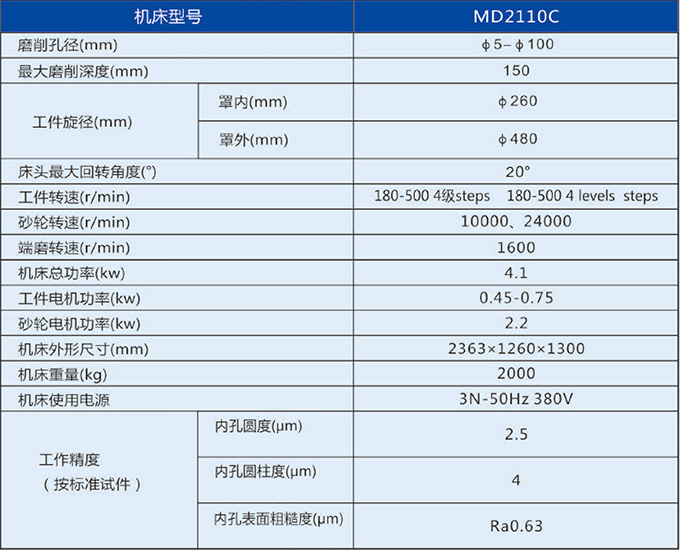 ● 機床砂輪軸最高轉速為24000轉/分,以提高磨削小孔。用戶特殊訂貨。可改裝電主軸變頻調速以磨削小直徑內孔。